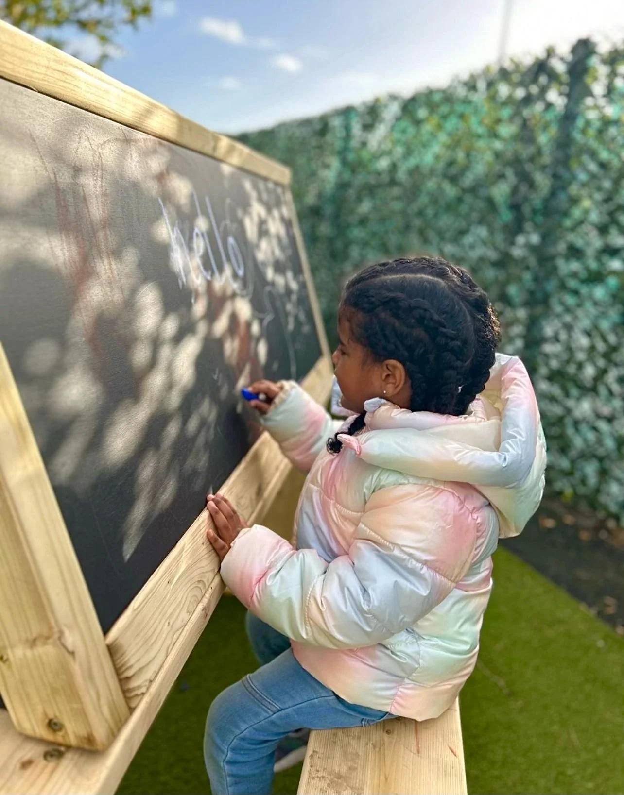 Earthy greens, warm wood tones, and playful pops of colour create a balance between professionalism and fun, appealing to both children and parents.